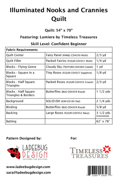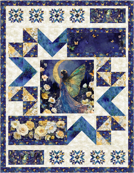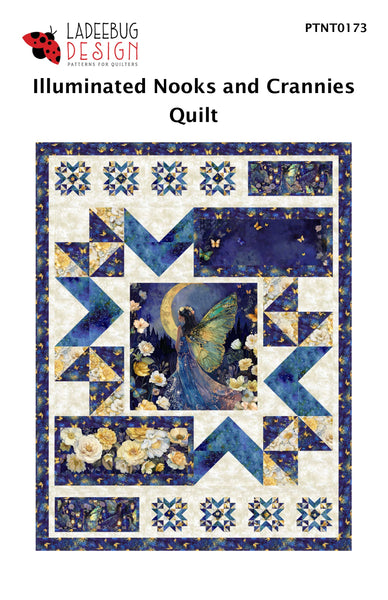 This quilt starts with a deconstructed panel and uses the quilt block design as inspiration to create the asymmetrical corners. With an off-set pieced block row and big print fabric the top and bottom borders come  to life.