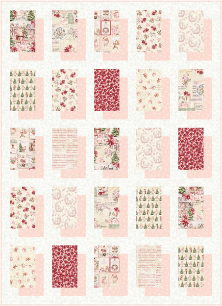 This quilt is made with 9 Fat Quarters, a shadow fabric, and a background. Each block is assembled like a log cabin, one side at a time, around and around. There is no sashing. Just 25 blocks and a border. It is simple construction but you would never know just by looking at it.