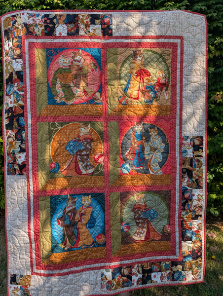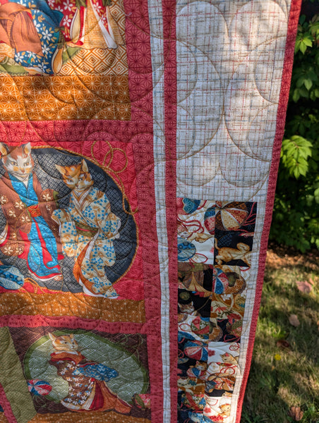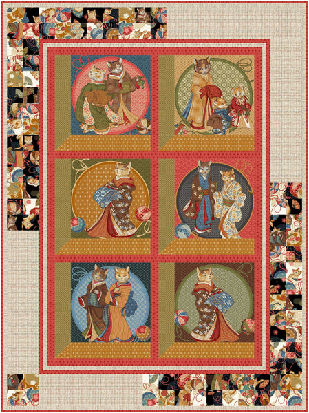 This attic window quilt is quick and easy to put together. With a half-square-triangle patch in the corner of the window, there are no difficult miters or "y" seams. Start with the 6 window blocks and add the asymmetrical 4-patch border to finish off the design. This quilt can be made with any 24" panel and the 4-patch border is fat eighth friendly.